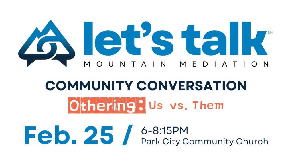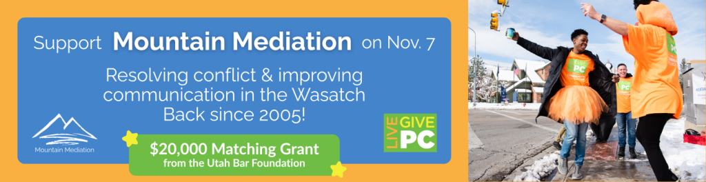 Mountain Mediation of Park City, Utah is a nonprofit community organization providing mediation and facilitation services in Summit and Wasatch counties. We also offer communication trainings to help individuals, organizations, schools, and businesses engage in constructive dialogue and effectively manage and resolve conflicts.